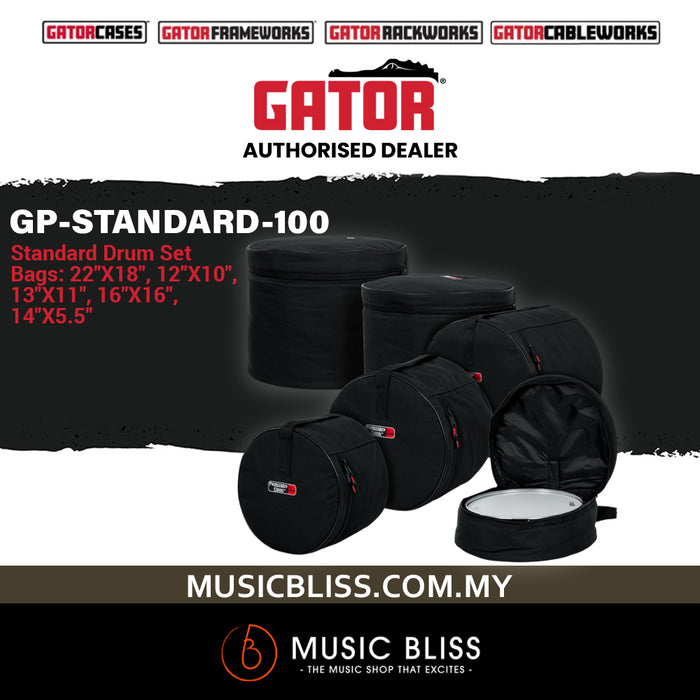 When you use Gator's GP-STANDARD-100 padded drum bags, you get the protection your drums need plus the lightweight portability you want. Made from tough 600-Denier nylon, each of the five bags included in the GP-STANDARD-100 set has a padded and lined interior, comfy carrying straps, and heavy-duty zippered closures. You get a snare bag, a bass drum bag, a floor tom bag, and two sizes of rack tom bags. These bags are compact and collapsable, so they won't take up a lot of room. The GP-STANDARD-100 set lets you transport your drums safely and carry them comfortably!