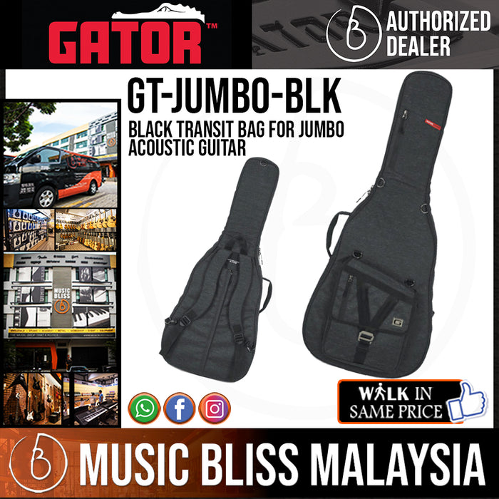 Gator's Transit Series acoustic guitar gig bag is a great solution for transporting your favorite instrument to and from the gig. Transit gig bags are made from durable and weather-resistant materials that hold your instrument snugly. The interior protects your guitar's finish with 20mm-thick padding and a removable 3-point interior padding system. And there is plenty of storage space for your accessories thanks to the large exterior pockets. Grab a Transit Series gig bag from Music Bliss, and you'll rest assured your guitar is in good hands.