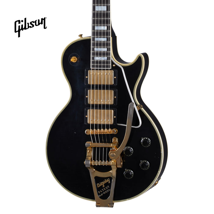 GIBSON 1957 LES PAUL CUSTOM REISSUE 3-PICKUP BIGSBY LIGHT AGED ELECTRIC GUITAR - EBONY (LPB357LAEBBG1)
