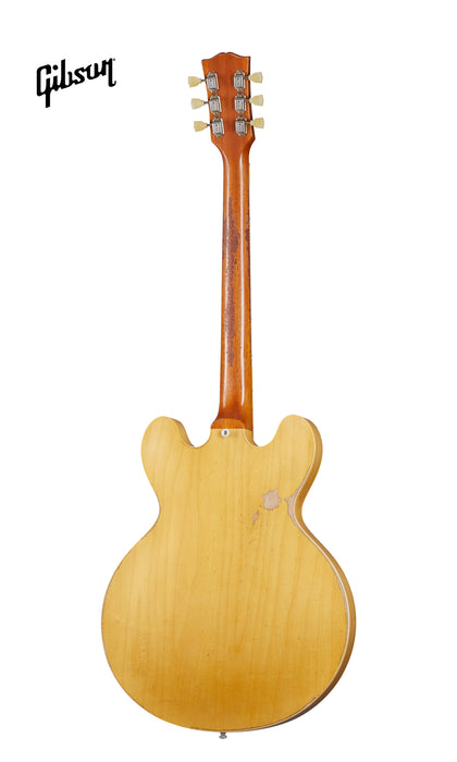 The Historic Reissue ES-335 is back and better than ever thanks to a year of studying, scanning, and listening to original examples. The expert craftspeople at the Gibson Custom Shop have rendered every contour, profile, inlay and color of the priceless vintage ES™ models in magnificent detail. The result is a playing and ownership experience that will keep you coming back for more. This 1959 Reissue model features rounded cutaways, a Medium C-shape neck profile scanned from originals, dot inlays, Kluson® tuners, and vintage-replica parts. It also features Ultra Heavy Aging by the skilled artisans of the Murphy Lab. The Murphy Lab Ultra Heavy Aged finish treatment, paired with heavily aged hardware, simulates decades of heavy play wear, giving it the unique character, vibe, and feel of an original example from the Gibson Golden Era.