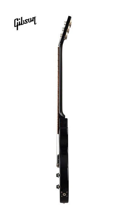 The Les Paul Junior returns to the classic design that made it relevant, played and loved -- shaping sound across generations and genres of music. It pays tribute to Gibson's Golden Era of innovation and brings authenticity back to life. Introduced as an affordable option for students and beginners in 1954, the Les Paul Junior has been embraced by musicians for over 60 years. The single cutaway slab mahogany body, single dogear P-90 pickup, single volume and tone controls all add up to a whole lot of guitar which is greater than the sum of its parts. The fat 50's-style neck profile and wraparound bridge add to the equation for rock solid tone. Available in Tobacco Burst and the new Ebony finish with tortoise shell pickguard.