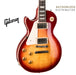 The new Les Paul Standard returns to the classic design that made it relevant, played and loved -- shaping sound across generations and genres of music. It pays tribute to Gibson's Golden Era of innovation and brings authenticity back to life. The Les Paul Standard 50's has a solid mahogany body with a maple top, a rounded 50's-style mahogany neck with a rosewood fingerboard and trapezoid inlays. It's equipped with an ABR-1, the classic-style Tune-O-Matic bridge, aluminum stop bar tailpiece, vintage deluxe tuners with keystone buttons, and aged gold tophat knobs. The calibrated Burstbucker 1 (neck) and Burstbucker 2 (bridge) pickups are loaded with AlNiCo II magnets, audio taper potentiometers and orange drop capacitors.