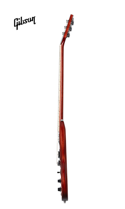 Tony Iommi's iconic riffs, heavy tones, and massively influential albums created the blueprint for heavy metal and many other genres to follow. His career, like the man himself, is universally loved and revered. And while his innovative tuning and playing styles were a major part of his monstrous tones, a heavily-modified 1964 Gibson SG was at the center of it all. Now Gibson USA has made a guitar based on the iconic original that launched countless heavy riffs, with a mahogany body, bound mahogany neck with a rounded profile, Indian rosewood fretboard with 22 frets, a Graph Tech® nut, Grover® Rotomatic® tuners with contemporary style buttons, and chrome-covered P-90 pickups. A reproduction of Tony's "Monkey" sticker is included in the case, along with two longer intonation adjustment screws in case you need additional adjustment range. A left-handed version is also available.