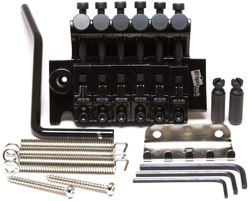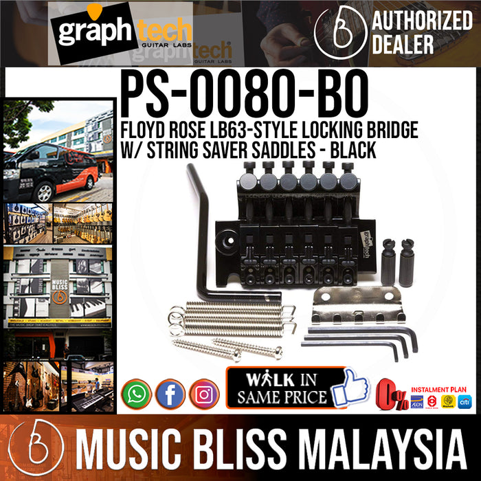 The PS-0080 is a replacement for a Floyd Rose Original and Licensed bridges. Our saddles have been machined out to allow us to drop in a String Saver insert that will drastically reduce string breakage. The LB63 is an unbeatable combination of materials that will improve your guitars tone, performance, and ultimately your guitar playing experience. String Saver loaded LB63 Floyd Rose style bridge. Comes complete with bridge, mounting studs, trem springs, trem claw and all allen keys.