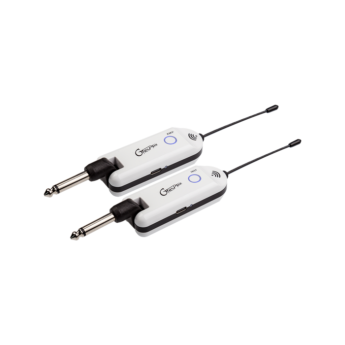 Each set comes with two ¼” instrument dongles that act as transmitter and receiver respectfully. Simply plug in the transmitter to your instrument jack and the receiving unit to an amp, audio interface, or any compatible audio device and enjoy an easy, wireless setup. Set up the transmitter and receiver to the same channel to start your playing. Each unit includes an 800mAh battery for excellent battery life and includes a battery life indicator so you know when to charge. Also included is a Y-style USB cable to charge both dongles with a single cable simultaneously.
