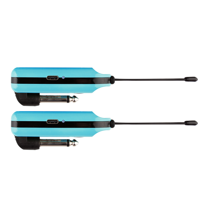 Each set comes with two ¼” instrument dongles that act as transmitter and receiver respectfully. Simply plug in the transmitter to your instrument jack and the receiving unit to an amp, audio interface, or any compatible audio device and enjoy an easy, wireless setup. Set up the transmitter and receiver to the same channel to start your playing. Each unit includes an 800mAh battery for excellent battery life and includes a battery life indicator so you know when to charge. Also included is a Y-style USB cable to charge both dongles with a single cable simultaneously.