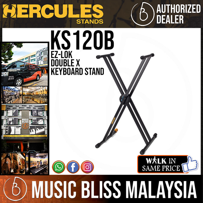 The HERCULES Double X Keyboard Stand KS120B features the patented EZ-LOK5 height settingsand heavy duty steel construction.