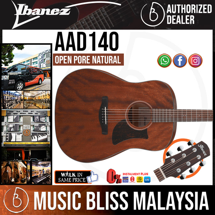 As part of their new Advanced Acoustic series, the AAD140 represents a bold step forward in design and tone. With the AAD140, Ibanez offers a grand dreadnought acoustic that has slightly larger overall dimensions. The result is not only a richer and brighter sound but a bump in volume! The AAD140 features a solid okoume top with okoume back and sides, plus an open-pore finish that really lets the natural wood tone come through. A Thermo-Aged nyatoh neck with ovangkol fingerboard delivers ultra-smooth response, making the AAD140 ideal for both flatpicking and fingerpicking.