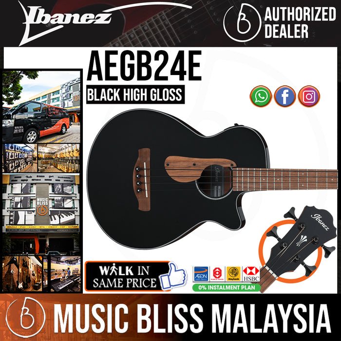 Featuring the same slimmer body depth design of past AEG offerings, the Ibanez AEGB24E is a high-performance acoustic-electric bass guitar. You'll experience rich tone, fat midrange, and loads of resonant warmth, thanks to an all-sapele construction, while a slim 3-piece nyatoh/maple neck ensures stellar response and playability. You'll also be blown away by the AEGB24E's plugged-in tone, courtesy of an Ibanez AEQ-2T preamp. Ultra-stable die-cast tuners round out the AEGB24E's robust features.