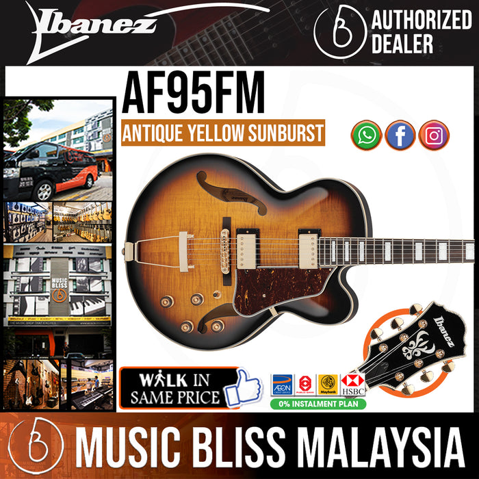 If you want a hollowbody electric guitar with classic looks and premium modern touches all for a song then take a good look at the Ibanez Artcore Expressionist AF95FM. This beautiful instrument exudes an elegant, old-school vibe while delivering state-of-the-art playability and tonal expressiveness. The AF95FM features a fast 3-piece mahogany/maple set neck and a gorgeous flame maple body with vintage-style F-holes. Your fingers will fly across the AF95FM’s silky-smooth bound ebony fingerboard. Loaded with a pair of Super 58 humbuckers, the Ibanez AF95FM is a jazz box that’s ready for any musical adventure.
