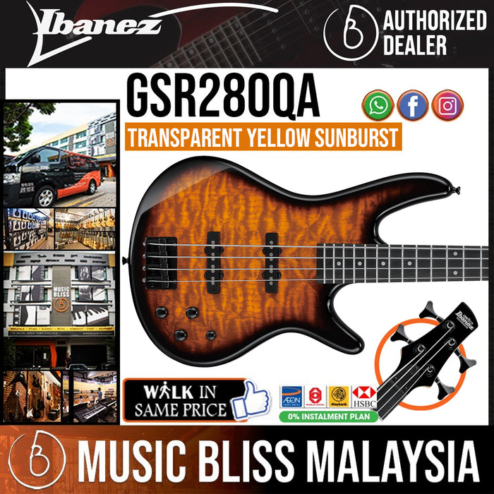 Ibanez GSR280QA Electric Bass Guitar - Transparent Yellow Sunburst (GSR280QA-TYS)