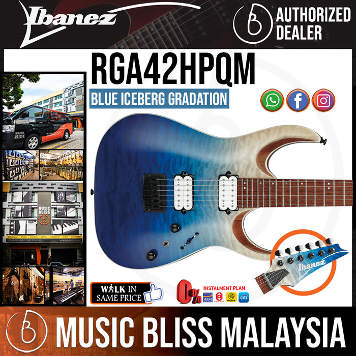 Featuring a fast maple Wizard III neck and jatoba fingerboard with a 15.7-inch radius, the Ibanez High Performance RGA42HPQM Electric Guitar is purposely built for high-speed, low-drag playing. It all starts with a balanced RG nyatoh body and quilted maple top for plenty of richness and snap, accented with eye-catching gold hardware. You'll love how this guitar sounds as soon as you plug it in its two hot DiMarzio Fusion Edge humbucking pickups and coil tap switch make it ideal for metal, rock, and blues. If you're searching for a guitar that won't hold you back, then Music Bliss has your axe: the Ibanez RGA42HPQM.
