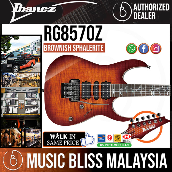 Like all the guitars in Ibanez’s high-end J Custom line, the RG8570Z positively oozes amazing looks, tone, and playability. Its beautiful AAA flamed-maple-capped African mahogany body supplies unbelievable resonance and sustain. Its 5-piece neck provides a just-right feel, while a Prestige fret edge treatment infuses its bound Macassar ebony fingerboard with the ultimate in smooth playability. DiMarzio’s Tone Zone, True Velvet, and Air Norton pickups push your amp to get crunchy rhythms and hot leads. Beyond that, you can bend, twist, and dive-bomb with impunity, thanks to an Edge-Zero vibrato bridge/tailpiece. The RG8570Z features Ibanez's gorgeous tree of life fingerboard inlay and cosmo black hardware.