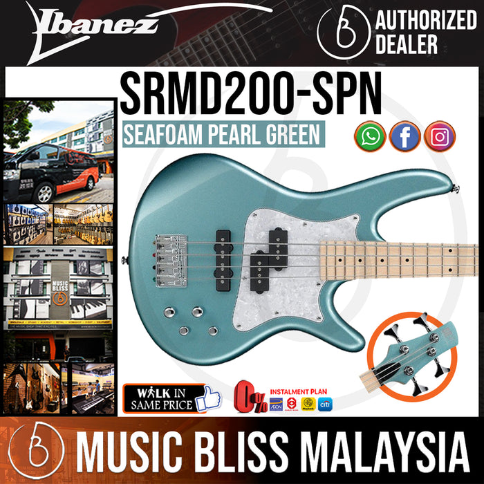 Ibanez Mezzo electric basses feature a medium 32" scale length that's comfortable for a wide range of players. These value-packed bass guitars provide a moderate string tautness that facilitates easy bends in the high register — and unlike some short-scale basses, the low E is never flubby, even when played open. The Mezzo SRMD200 4-string bass has a poplar body with a gloss finish and a fast, thin SRMD4 maple bolt-on neck. Bass players at Music Bliss know how important tonal versatility is, and you'll be impressed with this instrument's pair of Dynamix pickups — a hum-canceling split single-coil in the middle position and a J-style single-coil at the bridge. Custom electronics with 2-band EQ give you even more sound-shaping potential. For powerful, punchy tone, smooth playability, snappy retro-modern visuals — and big bang for your buck — the Ibanez Mezzo SRMD200 should definitely be on your short list.