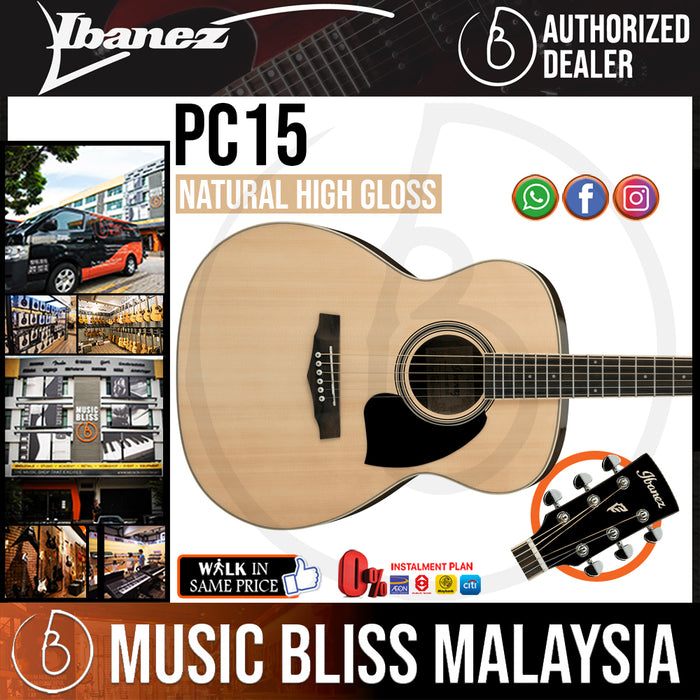 Looking for a quality acoustic guitar that won't break the bank? Music Bliss got your axe! The Ibanez PC15 sports the classic tonewood cocktail of a spruce top plus mahogany back and sides. This instrument projects lively, balanced tone that's in its element at home, onstage, or in the studio. And you'll appreciate the way the huggable grand concert body cradles comfortably when you're playing sitting down. The Ibanez PC15 rocks classy looks, great sound and playability, and a tiny price tag. What's not to love?