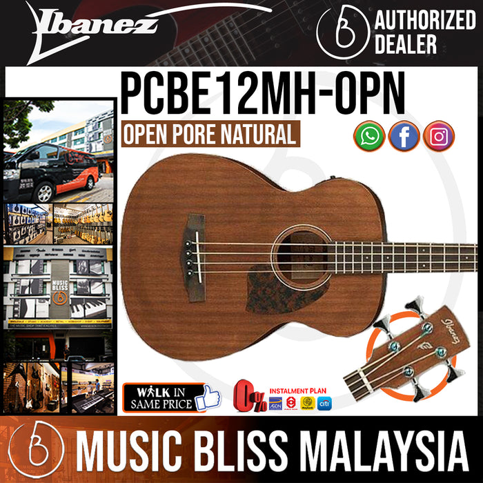 Looking for a quality 4-string acoustic-electric bass that won't break the bank? Music Bliss got your axe! The Ibanez PCBE12MH is all about the warmth of mahogany. With its mahogany top, back, and sides, this instrument projects warm, balanced tone that's in its element at home, onstage, or in the studio. And when you plug in onstage, the onboard Ibanez electronics deliver that same great tone. You'll appreciate the way the huggable grand concert body cradles comfortably when you're playing sitting down. The Ibanez PCBE12MH rocks classy looks, great sound and playability, and a tiny price tag. What's not to love?