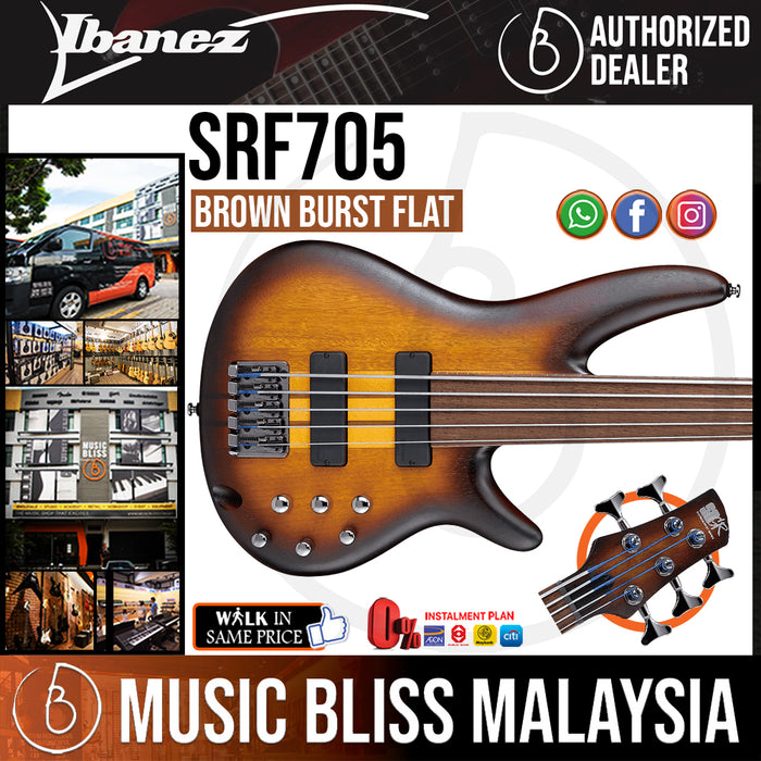If youe searching for a new bass tone the Ibanez Workshop SRF705 will deliver. The SRF705 maple/bubinga neck works in concert with its mahogany body wingsgiving you long sustain and an enhanced tone. An exclusive piezo pickup system and an extended fingerboard give you tones and notes typically reserved for upright basses. A pair of Bartolini pickups with a 2-band EQ serves up great electric tones that can be mixed with the piezo pickup to create your own signature sound. Find your perfect tone with the Ibanez Workshop SRF705!