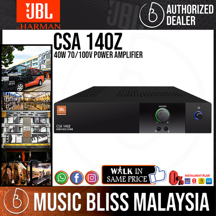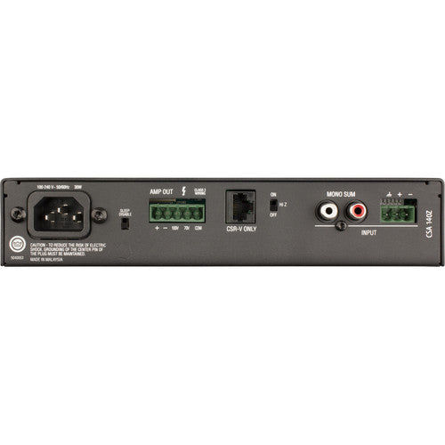 The JBL CSA 140Z packs a 40-watt, 1-channel power amplifier into a convenient 1U, half-rack enclosure. A handy front-panel knob makes volume adjustment a breeze, while an illuminated ring makes it easy to see the control in the dark. You also get support for JBL’s CSR-V in-wall volume control (sold separately). Add to that JBL’s super-efficient DriveCore technology, and you’ve got a power amplifier that’s tailor-made for just about every commercial and industrial use you can dream up.