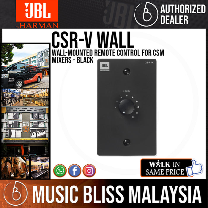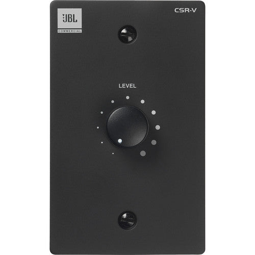 The black CSR-V Wall Mounted Remote Control for CSM Mixers from JBL is designed to provide analog DC voltage for controlling the volume on CSM-21 and CSM-32 mixers. It is wired with Cat 5 cable and has two RJ45 connectors. The CSR-V supports cable runs up to 1000 feet.