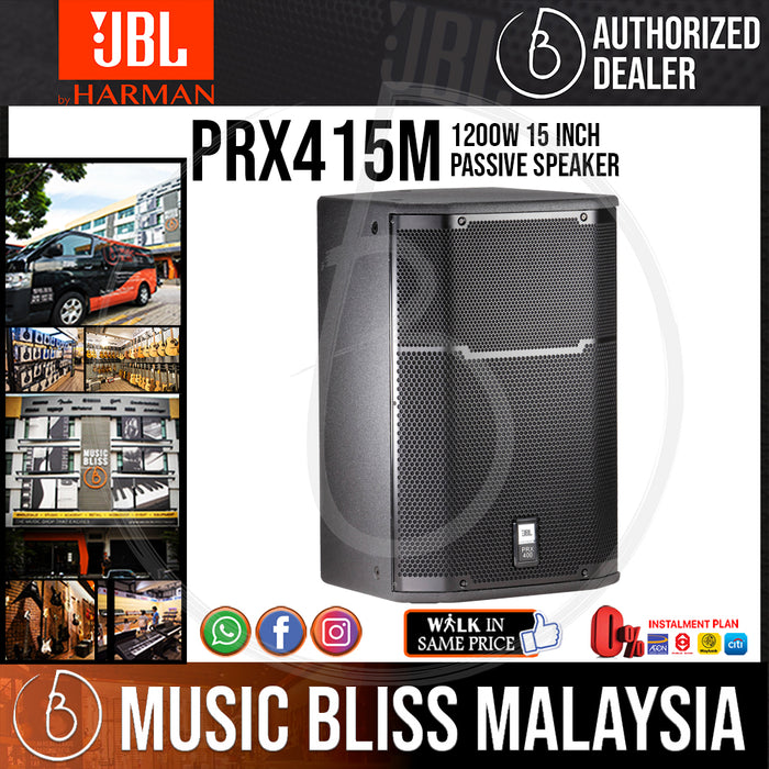 The JBL PRX415M passive loudspeaker is based on the same design as its powered brethren in the PRX600 Series, bringing you robust full-range performance that's ideal for clubs, schools, and houses of worship. The PRX415M is a 15" passive loudspeaker that delivers the kind of low-end presence demanded by rock, pop, hip hop, and many other modern genres, and it's equally as capable as a floor monitor as it is as a main speaker. If you're looking for loudspeakers with plenty of punch, impact, and presence, JBL PRX415M passive loudspeakers are perfect for you.