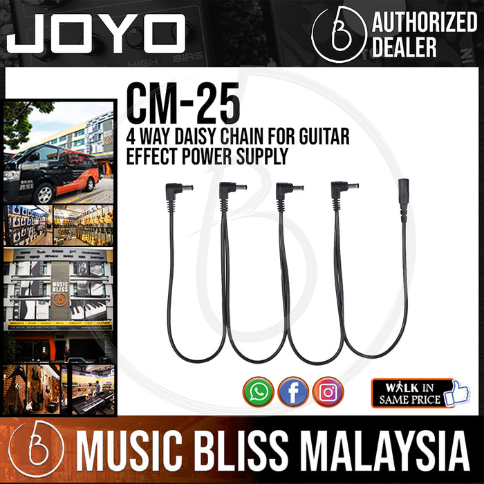JOYO’s CM25 daisy chain cables can be used to supply power to more than one guitar effect pedal, removes the need for 4 x 9v power supplies using the same polarity. All the plugs of these series have undergone pure copper electroplating treatment and the core of the power cable is a pure copper conductor and will fit most guitar effect pedals requiring a 5.5mm jack.
