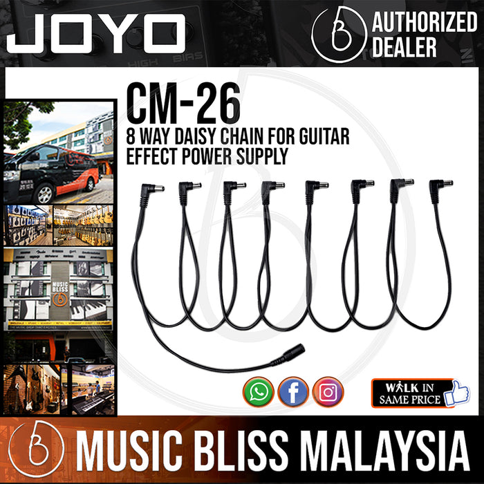 JOYO CM-26 daisy chain cable can supply power to upto 8 guitar effect pedals. All the DC plugs of these series have undergone pure copper electroplating treatment and the core of the power cable is a pure copper conductor. These cables are suitable for heavy current or low current effect pedals.