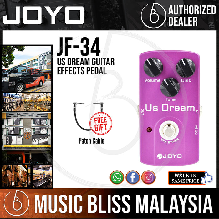 JOYO JF-34 US dream distortion pedal featuring true-bypass wiringquality components and an efficient circuit designthe JF-34 US dream distortion performs like any other high-end boutique distortion pedalbut has a price point that allows entry level and beginner players to get a taste of this type of pedals expressiveness.