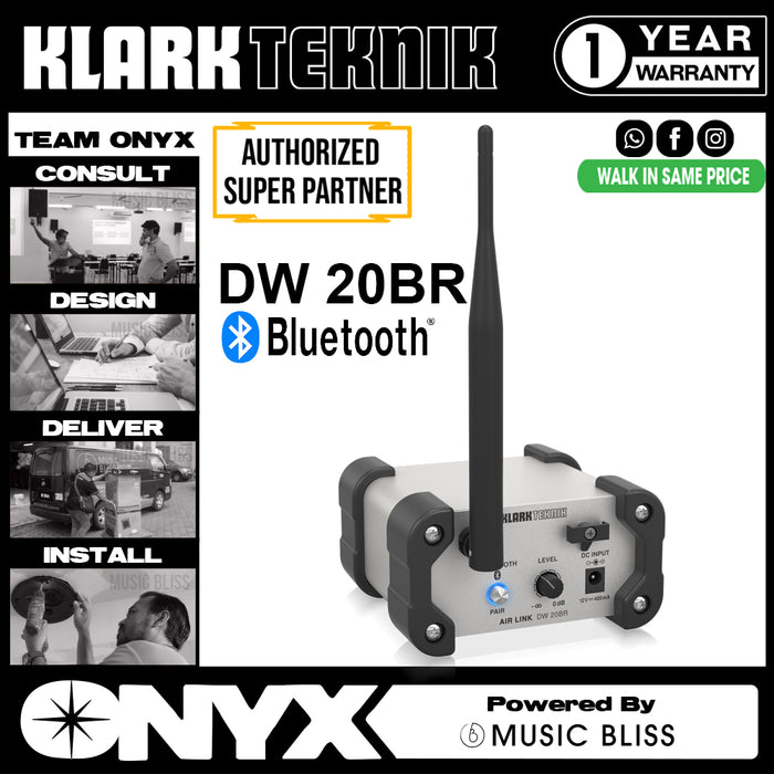 The AIR LINK DW 20BR Bluetooth Wireless Stereo Receiver brings the convenience of high-performance audio-streaming to any installed or portable sound system, making it ideal for hospitality and event spaces, as well as retail, home audio, and much more. Featuring a maximum wireless range of 100 feet (30 m), DW 20BR is easy to use and utilises premium-grade Neutrik balanced XLR and unbalanced 1/4" TRS connectors to cover a wide range of audio applications. Thanks to its high headroom design, the DW 20BR receiver provides pristine audio streaming that is far superior to competing products. Care has been taken in both the design process and component selection to ensure the highest-quality performance in its class.