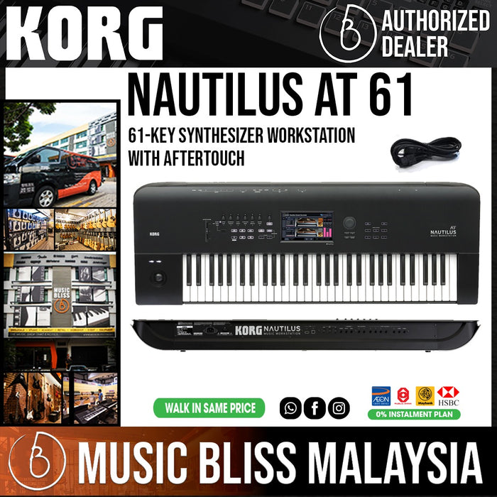 Fortified with nine powerful sound engines — each optimized for a specific task — the Korg NAUTILUS pushes the performance envelope for synth workstations. Leveraging Korg’s latest cutting-edge technology, NAUTILUS advances the state of the art with its robust feature set, which gives you fingertip access to a massive arsenal of premium sounds, full-featured sampling and HD audio recording, studio-grade effects, and stunning processing power — all harmoniously integrated into a sleek, robust chassis that’s easy to transport and looks incredible onstage. Korg KRONOS set the standard for the modern, multi-engine music workstation. Now, NAUTILUS gives keyboardists the sonic capabilities of KRONOS, with an even larger soundset, in a streamlined, more affordable Japanese-built performance synth workstation. Plus, this NAUTILUS 61 ups the ante with aftertouch. Not only does this synth workstation offer you Korg's high-quality sound, but it delivers detailed control when it comes to sculpting and creating it.
