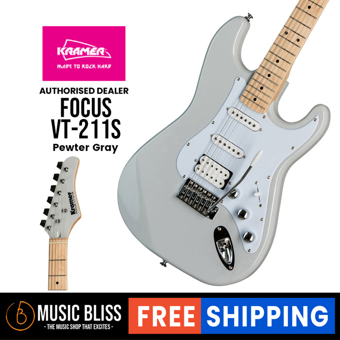 Ready to pick up your first Kramer guitar and start rocking? Then, there’s no better choice than the Kramer Focus VT-211S electric guitar. This classically styled six-string provides an affordable entry point for new guitarists, while delivering top-notch tone from its combination of two Kramer Alnico V single-coil pickups and a Kramer Alnico V humbucker pickup. An all-mahogany body is packed with deep, warm tone contrasted against a snappy maple neck with a super-fast 12-inch radius fingerboard and 21 medium jumbo frets — perfect for aspiring virtuosos. Guitarist at Music Bliss all remember their first axe, and very few of us had one as slick as the Kramer Focus VT-211S. Grab one for yourself or the would-be guitar slinger in your life, and let the musical journey begin!