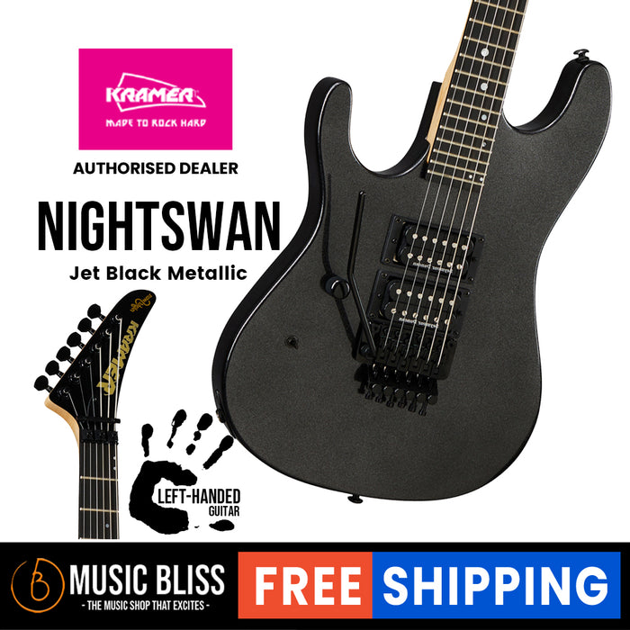 Originally a signature guitar in the 1980s, the Kramer Nightswan is a true shredder’s delight. And who’s signature model was it? Let’s just say that this sweet-savage axe-wielder was a real holy diver. This made-for-performance double-cutaway boasts a head-turning metallic finish, but it wasn’t built for show — unless it’s to show off your chops. It’s C-shaped, 3-piece maple neck is unlike any other guitar you’ll ever pick up, while its ruler-flat 16”-radius ebony fingerboard ensures lightning-fast playability. Plug into any high-gain monstrosity, and you’ll be greeted by classic hot-rodded humbucker tones, courtesy of two Seymour Duncan JB pickups. No guitar would be shred-worthy without a double-locking tremolo, and the Nightswan includes the gold standard — a Floyd Rose. The Nightswan features rock-solid deluxe tuners, stylish fingerboard inlays, and an era-defining reverse banana-style headstock.