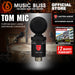 Throughout history, drummers have had relatively numerous options for tom mics. However, the best ones all contain the same magic formula: excellent off-axis rejection, high SPL handling, and wide frequency range. Now, Lauten Audio is here to throw its hat in the ring with the aptly named Tom Mic, the first large-diaphragm FET condenser microphone built specifically for toms. It may also be the last tom mic you need, considering the Tom Mic’s -28dB of off-axis rejection, more than 135dB SPL handling, and 20Hz to 20kHz frequency response. Plus, excellent onboard sound shaping capabilities — three high cuts and three low cuts — ensure that the Lauten Audio Tom Mic will sound fantastic on any rack or floor tom. The Tom Mic’s diminutive size (a little over 5 inches with clip) lets it fit easily on any drum set, and its solid brass headframe plus mildew-resistant dust filter protects it from stick hits, drumstick wood shavings, and much more. Finally, a vibration-resistant capsule means that the Tom Mic is ready to be mounted either on your drum’s rim or on a mic stand.