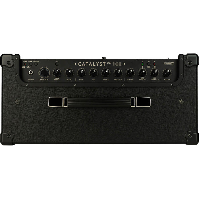 Equipped with an extensive array of amplifier models derived from Line 6’s Helix ecosystem, the Catalyst CX 100 merges modern modeling excellence with the knob-per-function workflow of a traditional combo amplifier. This 100-watt, 2-channel, 1 x 12-inch combo amp doubles the sonic potential of the original Catalyst series, equipped with a brilliant boost section and 12 superlative amplifier models that cover everything from modern high-gain fury to crisp, clear vintage-style cleans. Two effects sections allow you to simultaneously pair any of the Catalyst CX 100’s 24 effects together, and you also get an effects loop to seamlessly integrate your stompbox collection. Lastly, a built-in USB audio interface, adjustable output power, MIDI functionality, and XLR direct ensure that this classic combo is ready to serve as the centerpiece of your home recording rig. For the guitarist coveting a supremely versatile combo amp packed with studio-friendly features, Line 6's Catalyst CX series is sure to spark your playing, tone, and creativity.