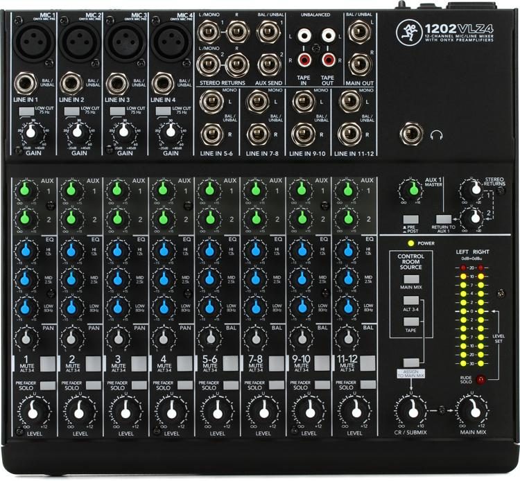 Beyond sounding great, the Mackie 1202VLZ4 mixer is one piece of gear you can truly rely on. It continues the VLZ Series' trend for rock-solid construction, while taking your sound quality to a new level. You've got an amazingly wide dynamic range, incredible 60dB gain range on the Onyx microphone preamplifiers, and ultra-low-noise performance. The 1202VLZ4 also boasts better-than-ever RF rejection for prime performance in broadcast situations. And with high-resolution meters, generous I/O, and sealed rotary controls that keep out dust and grime, the Mackie 1202VLZ4 is one of Mackie's best mixers ever.
