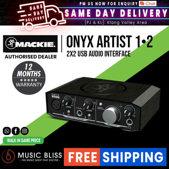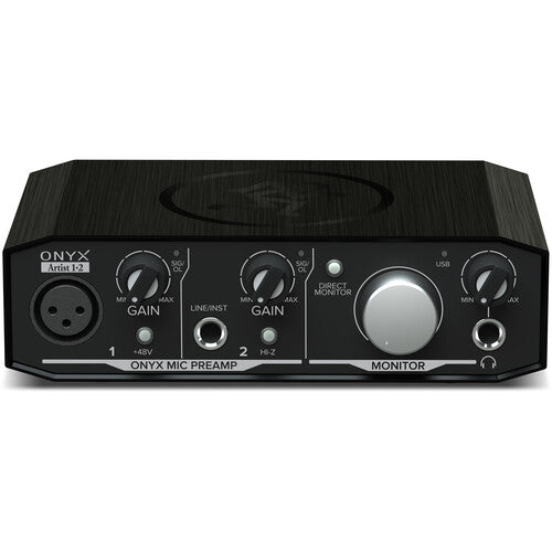 The Mackie Onyx Artist 1-2 is tailor-made for singer/songwriters and content creators. Experience top-notch sound, thanks to high-resolution 24-bit/192kHz converters combined with premium analog circuitry. Inject your recordings with excellent fidelity and dynamic range, by virtue of a boutique-sounding Onyx mic preamp. You also get a 1/4" input with a hi-Z switch for DI-ing your guitar or bass. Tracking with the Onyx Artist 1-2 is a breeze, with zero-latency direct monitoring and a headphone output. Bus-powered for the ultimate in portability, the Onyx Artist 1-2 is a great way to capture any performance.