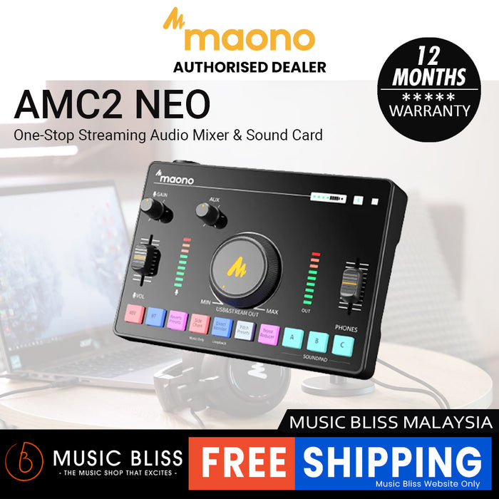 ● RECORD WHATEVER YOU HERE: The AMC2 NEO Audio Interface offers independent controls for MIC volume, MIC gain, AUX IN, Headphones, and stream out.
