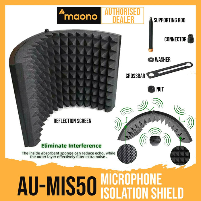 The Maono microphone isolation shield is multilayer noise reduction designed, portable and foldable. The high-density acoustic foam can cut down echo, meanwhile, the outer layer can filter out extra noise. It is easy to get the studio to pick up effects when using our microphone isolation shield during recording on various occasions