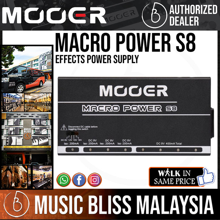 Macro S8 is a pedal power supply output power with eight power supply Jacks, equipped with functions of vary voltage input switch, output power not flush-mounted pins, over-current protection and adjustable output. It was designed to meet the needs of users, and offer convenient and pure experiences.