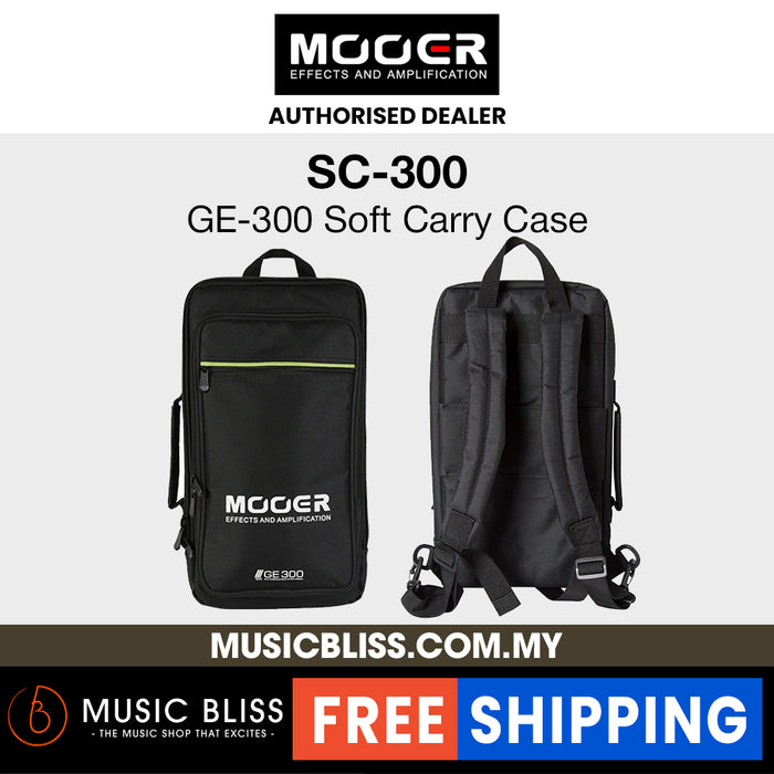 The MOOER GE-300 soft carry case is designed to protect your GE-300 from the unforgiving environments of night clubs, bars, stadiums, and ”the road.” This soft carry case features a main compartment for the GE-300 unit, a front pouch to safely store cables, and a zippered front pocket for picks and other accessories. There are also two backpack-style straps for carrying convenience and a sleeve if you prefer to attach it to another bag or guitar case.