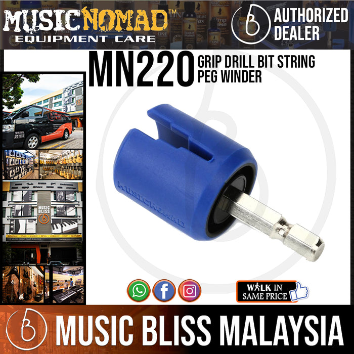 Changing strings just got a whole lot easier, safer and more FUN!. Music Nomad’s patent pending GRIP Bit peg winder attaches to any cordless power drill or power screwdriver. Our innovative GRIP Technology smoothly and silently slips over your tuning pegs for a scratch free & clank free operation compared to traditional plastic peg winders. Our contoured design fits virtually all tuning pegs both big and small. It’s perfect for electric and acoustic guitar, bass, banjo, mandolin, ukulele and orchestral strings. Using the highest quality materials including a carbon steel shaft. So don’t lose it or loan it, you’ll look forward to the next time you change your strings. That’s Music Nomad quality – raising the bar in equipment care.