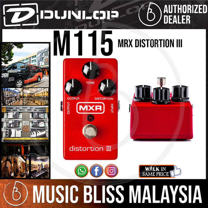 The MXR Distortion III pedal brings the crunch! It's built for the long haul, with top-notch components, a super-durable metal housing, a reliable footswitch, and large, easy-to-use control knobs that are perfect for onstage tweaking. You can go from natural grit and overdrive to intense, searing distortion. It's great for kicking your solos up a notch, driving your amp's input, or providing realistic amp tones on its own. Plug into the versatile MXR Distortion III.
