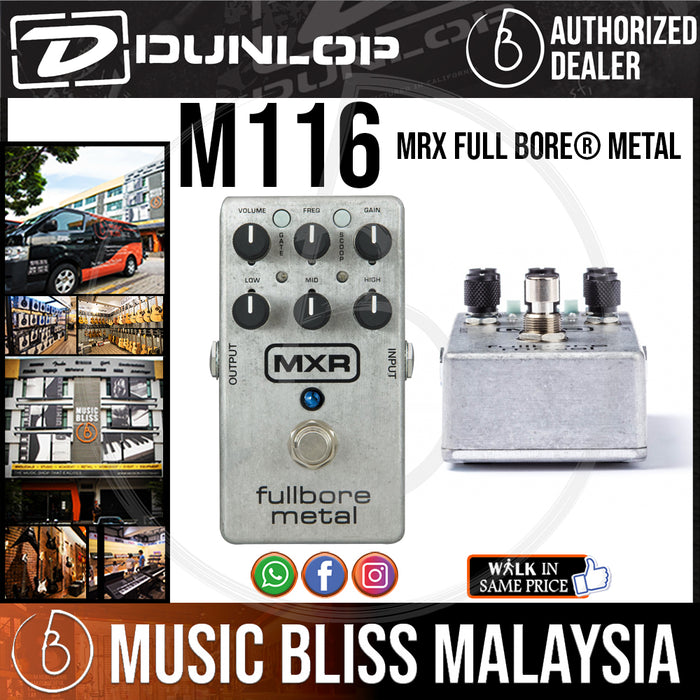 Plug into the MXR Fullbore Metal high-gain distortion pedal and experience the full force of what your guitar can do for you! Equipped with all the tools you need for mammoth high-gain riffs and solos, the Fullbore Metal includes a 3-band EQ with sweepable midrange, a very effective switchable noise gate you can tailor to your taste, and a Scoop switch that boosts lows and highs for big metal tone. All this functionality is packed into a very compact and tough chassis, making the Fullbore Metal pedal a great fit for your pedalboard.