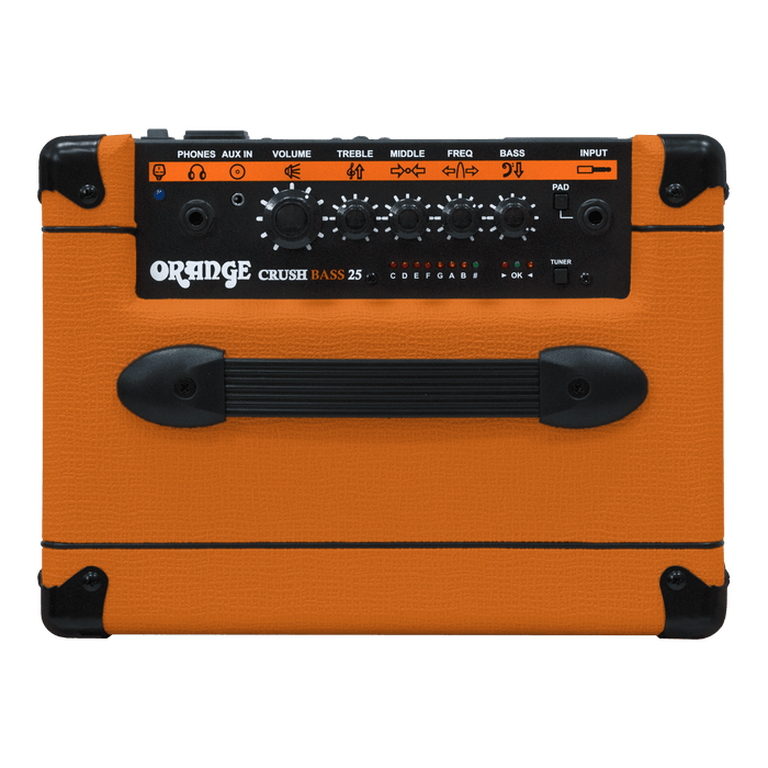 An update of Orange's popular Crush Pix bass combo amplifiers, the Orange Crush Bass 25 injects excitement into your practice sessions. Loaded with features from their higher-end OB1 and 4 Stroke amps, Orange infused the Crush Bass 25 with lots of sound-shaping power, courtesy of an active EQ and parametric mid control. A ported cabinet imbues this 25-watt powerhouse with ample low end. All-analog circuitry reproduces the classic warmth favored by such iconic bassists as Geddy Lee, John McVie, and Glenn Hughes (and many of us here at Music Bliss). The Orange Crush Bass 25 bass combo amplifier - who knew that jamming in your apartment or dorm room could be so much fun?