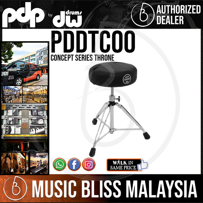 Part of Pacific Drums and Percussion's pro-level Concept Series, the ergonomic PDP PDDTC00 is a comfortable, practical drum throne. With an adjustable seat height ranging from 22 to 28 inches, you'll be at the perfect level, whether you're a giant or fun-sized. Built to last, the PDDTC00 features a black 14-inch seat and a threaded post.