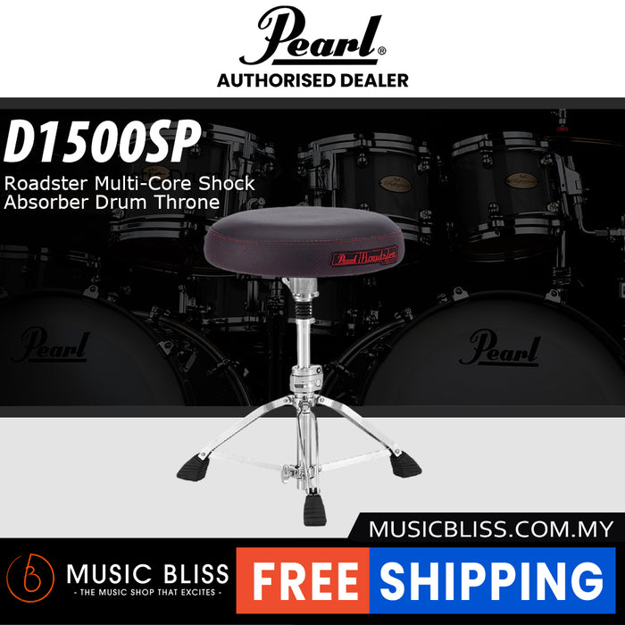 The Pearl Roadster D1500SP drum throne's Multi-Core seat top consists of several layers of variable density foam to supply the right support where it's most needed. The seat itself sits on a robust set of double-braced legs with large rubber feet for road-tested stability on wood, tile, carpet, or concrete. A locking manual spindle makes it easy to dial in and recall your height settings from the stage to the studio. And thanks to its integrated shocks, the D1500SP absorbs all the energy from the stage and your performance without punishing your spine. Additional Roadster features we love include the Stop-Lock rotation feature, which lets you swivel or stay put depending on your preference. Even better, the Roadster D1500SP accepts the optional DTBR1535 fully adjustable backrest (not included), which suits this throne to just about any player preference and setting on earth. Searching for comfort? You'll find it in the Pearl Roadster D1500SP drum throne from Music Bliss.
