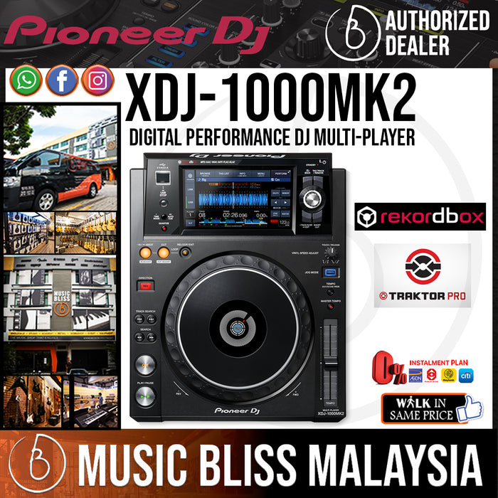 Redesigned for higher-quality audio and faster browsing, the Pioneer Pro DJ XDJ-1000MK2 is the serious media player, software controller, all-around digital DJ workhorse you need. Taking its cues from the professional series CDJ-2000NXS, the XDJ-1000MK2 offers you the ergonomics of a large platter, streamlined controls, and stable design. An awesome 7", color touchscreen puts all of the advanced controls and options at your fingertips, which makes everything intuitive, from loading the right tunes from USB or Wi-Fi storage to executing Beat Jump and quantize modes. Top it off with total rekordbox compatibility, and the XDJ-1000MK2 is ready for anything.