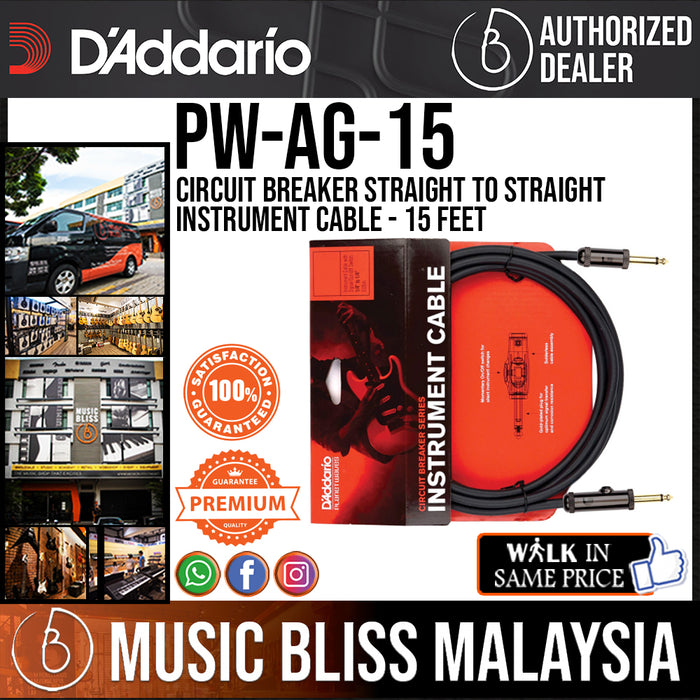 D'Addario PW-AG-15 Circuit Breaker Straight to Straight Instrument Cable - 15 feet (PWAG15)