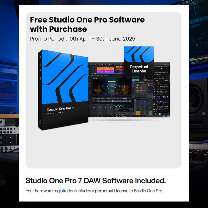 Software must be registered with PreSonus by 31/12/25. Visit the PreSonus Promo Webpage