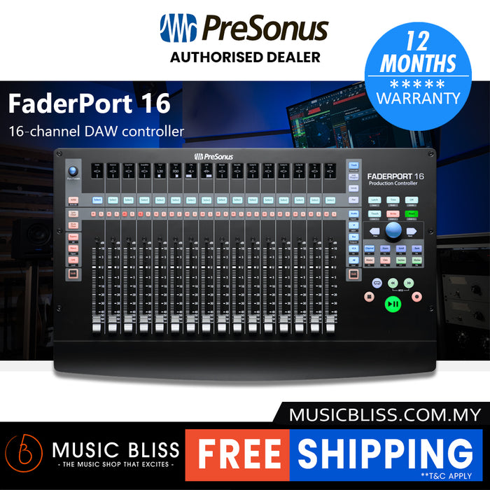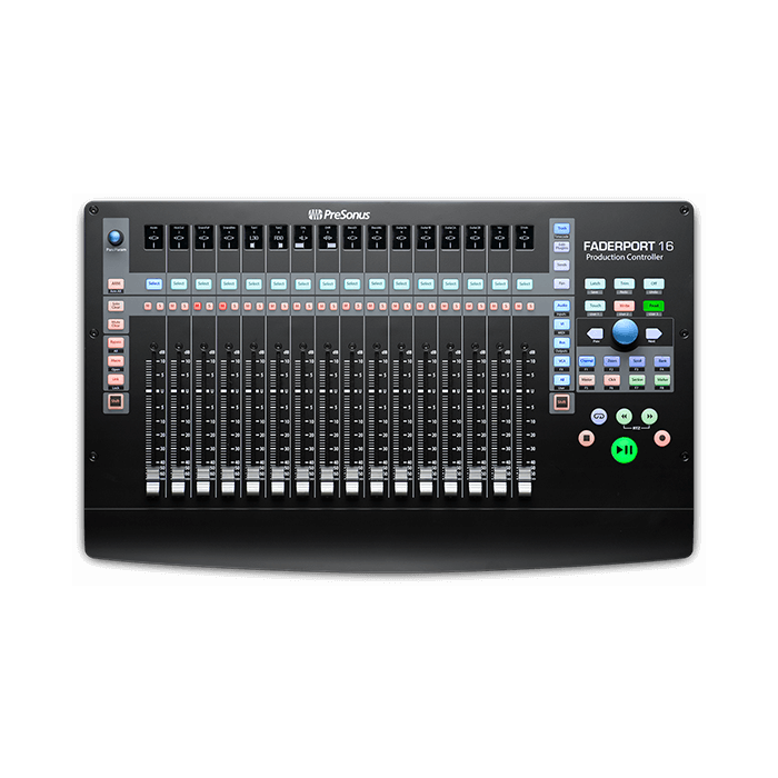 A superior solution for anyone who mixes in the box, only the FaderPort 16 provides 16 100 mm touch-sensitive, motorized faders in a compact chassis that easily sits on any desk. Like PreSonus®' popular FaderPort 8, the FaderPort 16 features digital scribble strip displays; mute and solo for every channel; complete automation and transport control; plus level, pan, send, and plug-in control modes for every fader. The unique Session Navigator makes mixing and controlling your favorite DAW application quick and easy by putting eight critical functions under your fingers, including navigation, zoom, and master fader control. The FaderPort 16 is compatible with virtually any DAW host for Mac® or Windows®, with support for HUI and Mackie Control, including customized Mackie Control modes for Logic, Cubase, and Sonar. Its native Studio One Pro support provides even more functionality with PreSonus' easy-to-use DAW, including Control Link support as well as parameter follow, allowing you quick access to any control under your mouse. Its ergonomic design makes it a comfortable companion to your keyboard and mouse.