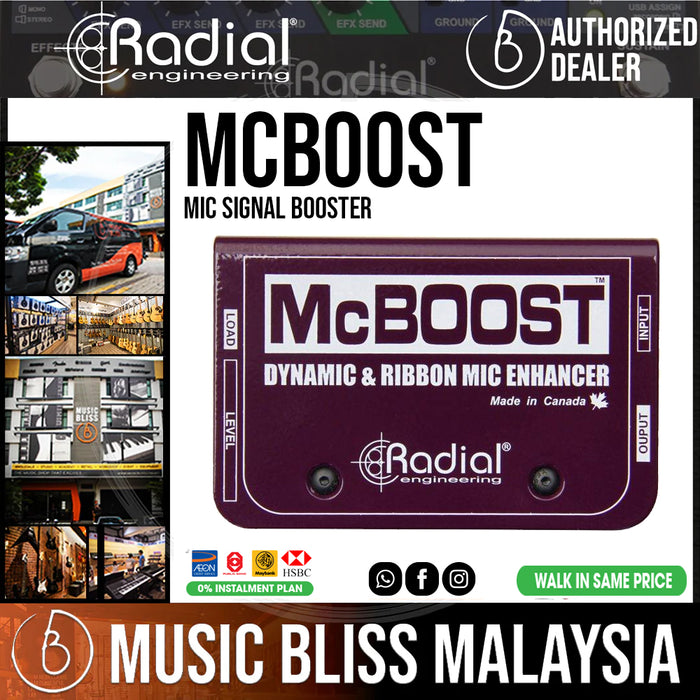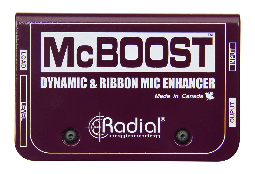 True to its name, Radial's McBoost boosts the output of dynamic mics, giving you better transient response. You can also use it on your low-output ribbon mics to bring them up to optimal input level for your console or preamp. McBoost's 100% discrete Class A circuitry starts with a 2-transistor J-FET circuit that produces up to 25dB of clean gain. Connect McBoost in-line and activate phantom power. Choose one of three impedance settings. Kick in the 3-position level switch if needed. You're ready to rock. McBoost's elevated output adds clarity and the drive you need for long cable runs in the studio, broadcast center, and onstage.